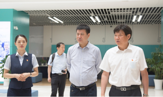 7月13日上午,山东莱商银行行长朱鸣、工会主席崔军一行5人到我行就智慧银行建设与运营开展交流学习,董事长臧正志、行长方锦圣、党委副书记周加琪、副行长杨林陪同参观交流,网络金融总部、信贷管理部、科技部等部门负责任人参加座谈交流。